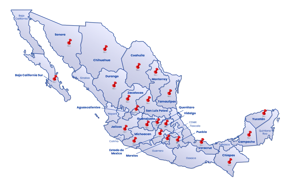 Nuestra cercanía a los clientes en los diferentes estados nos permite ofrecer un servicio de consultoría más efectivo, comprender a fondo sus procesos y diseñar programas de tratamiento que respondan precisamente a sus necesidades, optimizando costos y recursos.